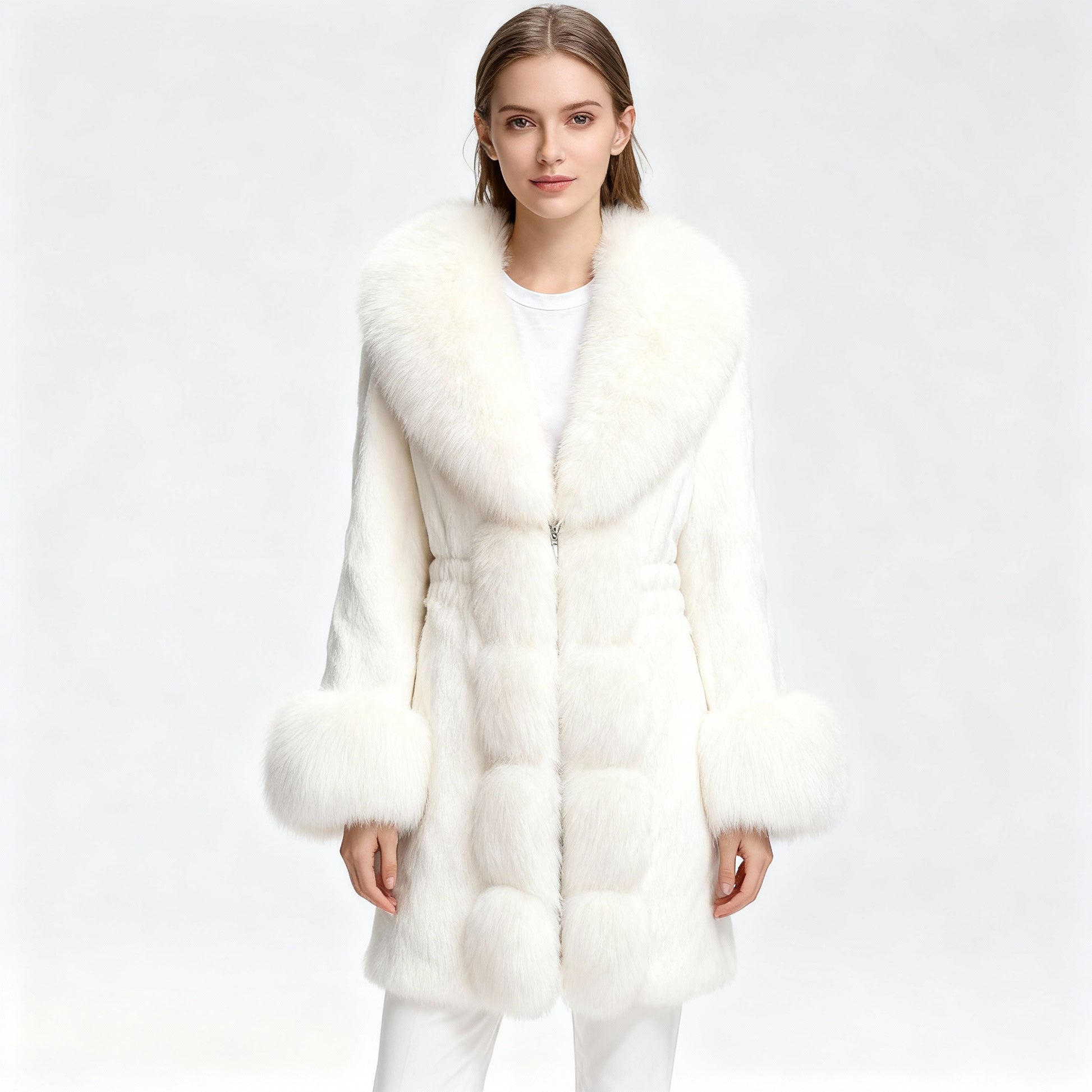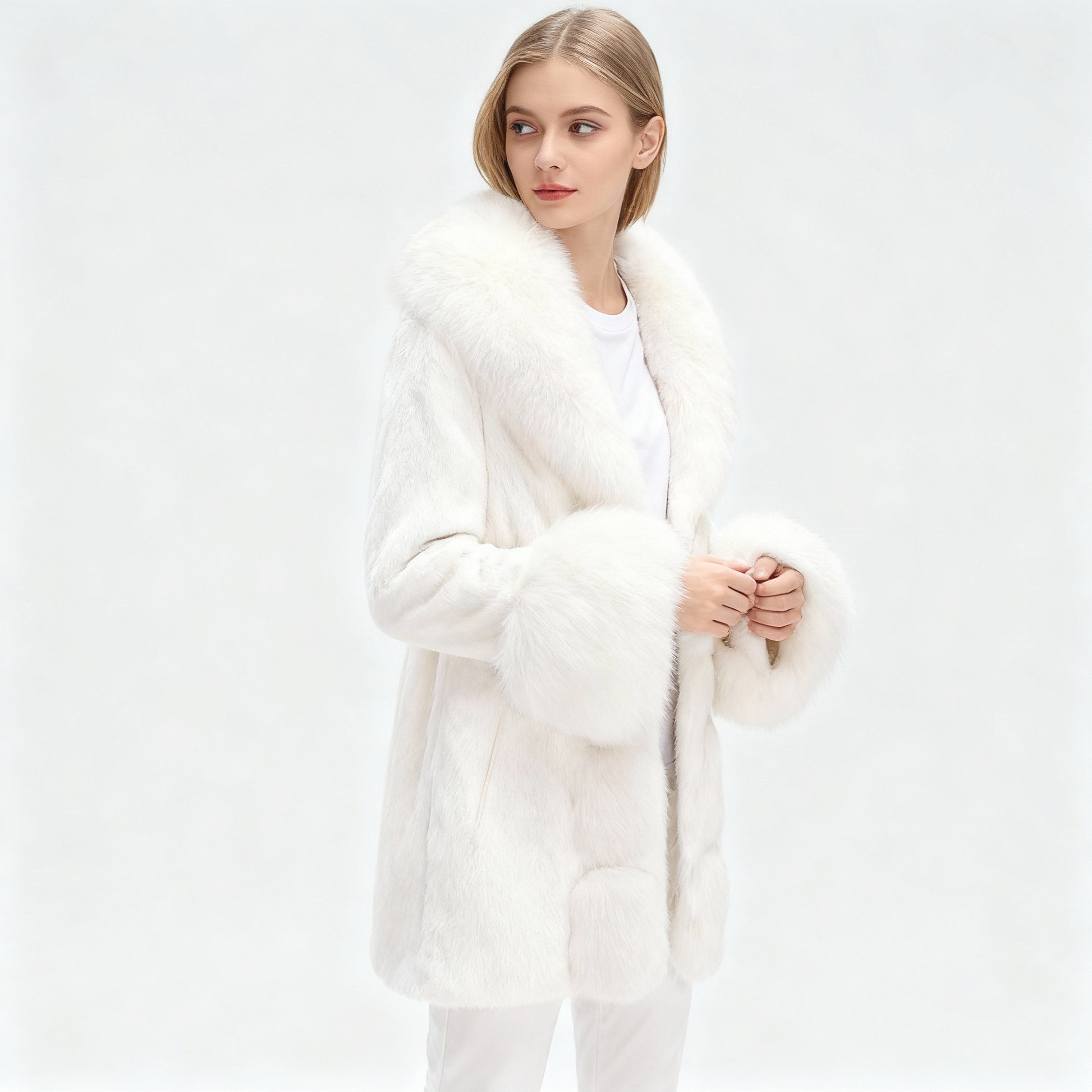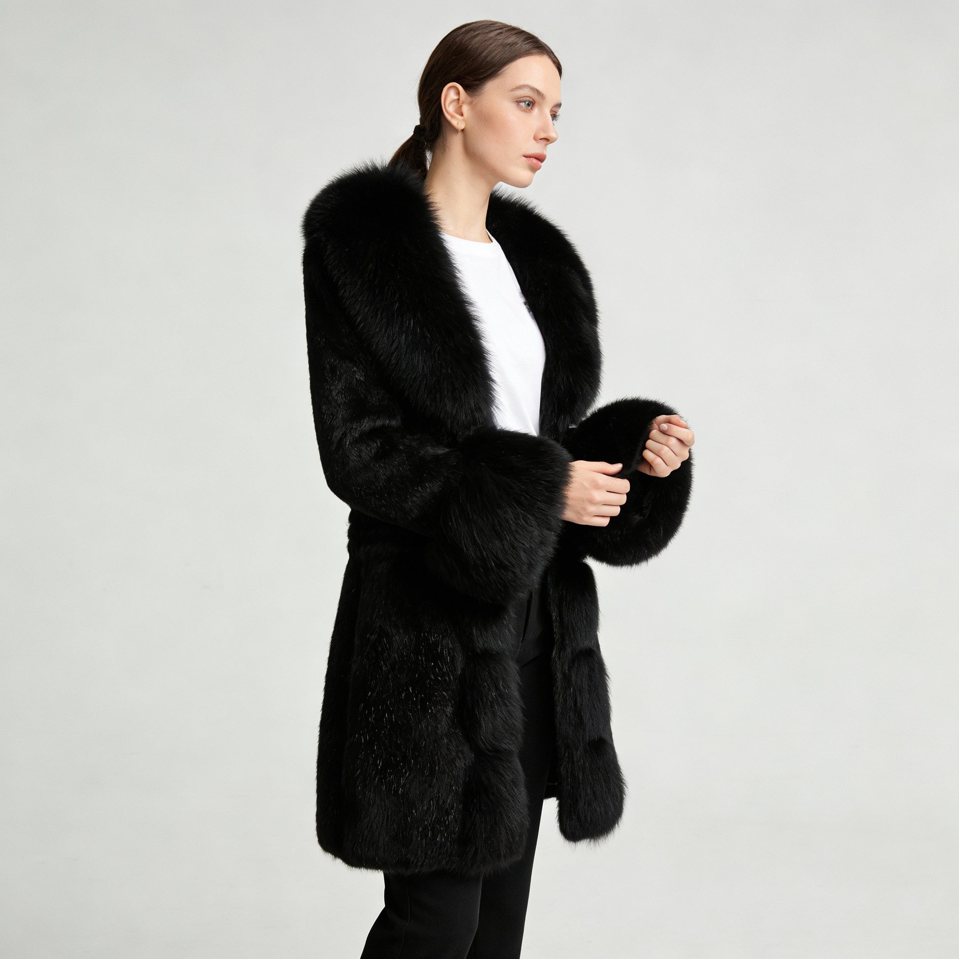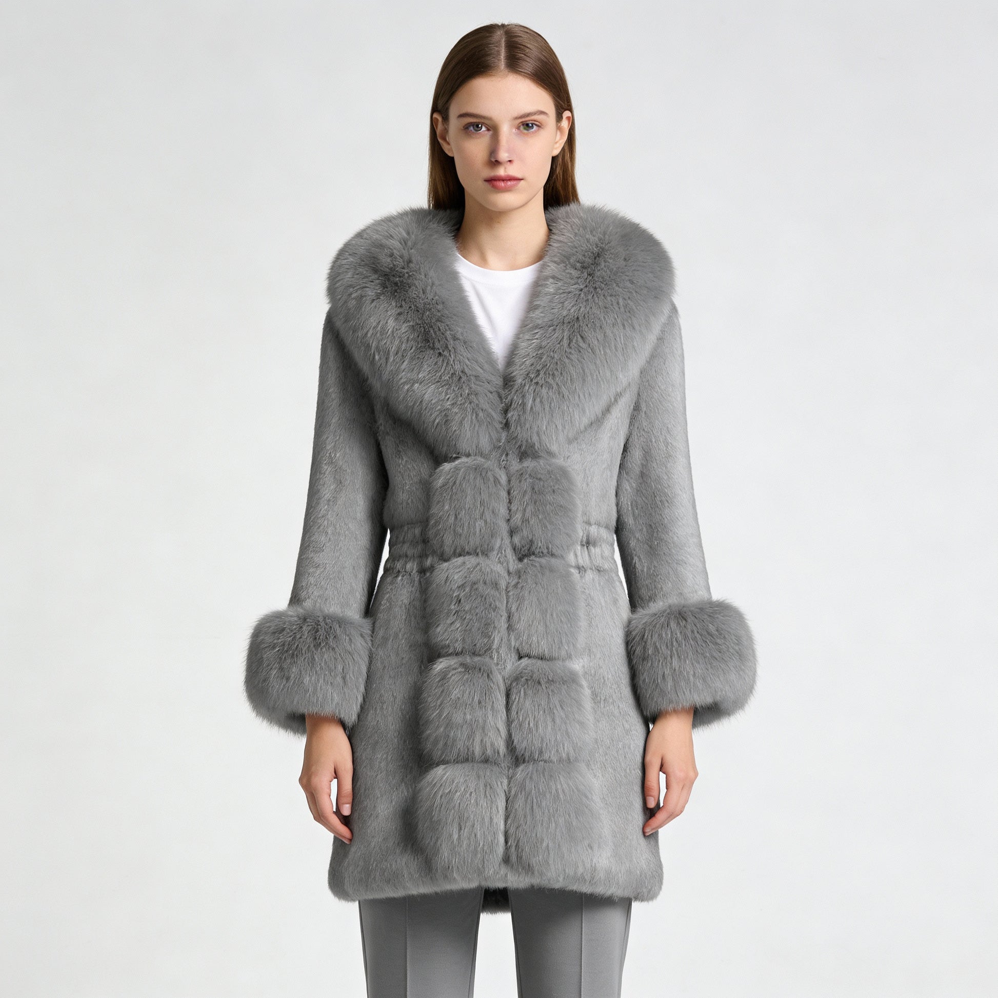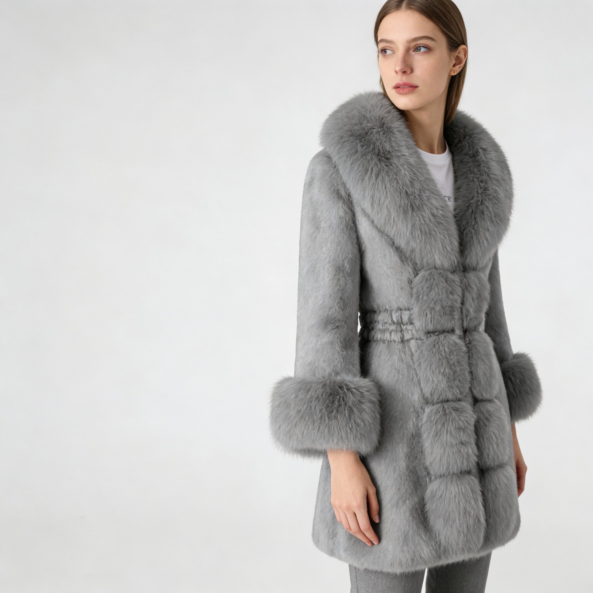 Luxurious softness meets sleek style; this coat blends rich faux fur and fine details for feminine confidence and comfort in cold weather.