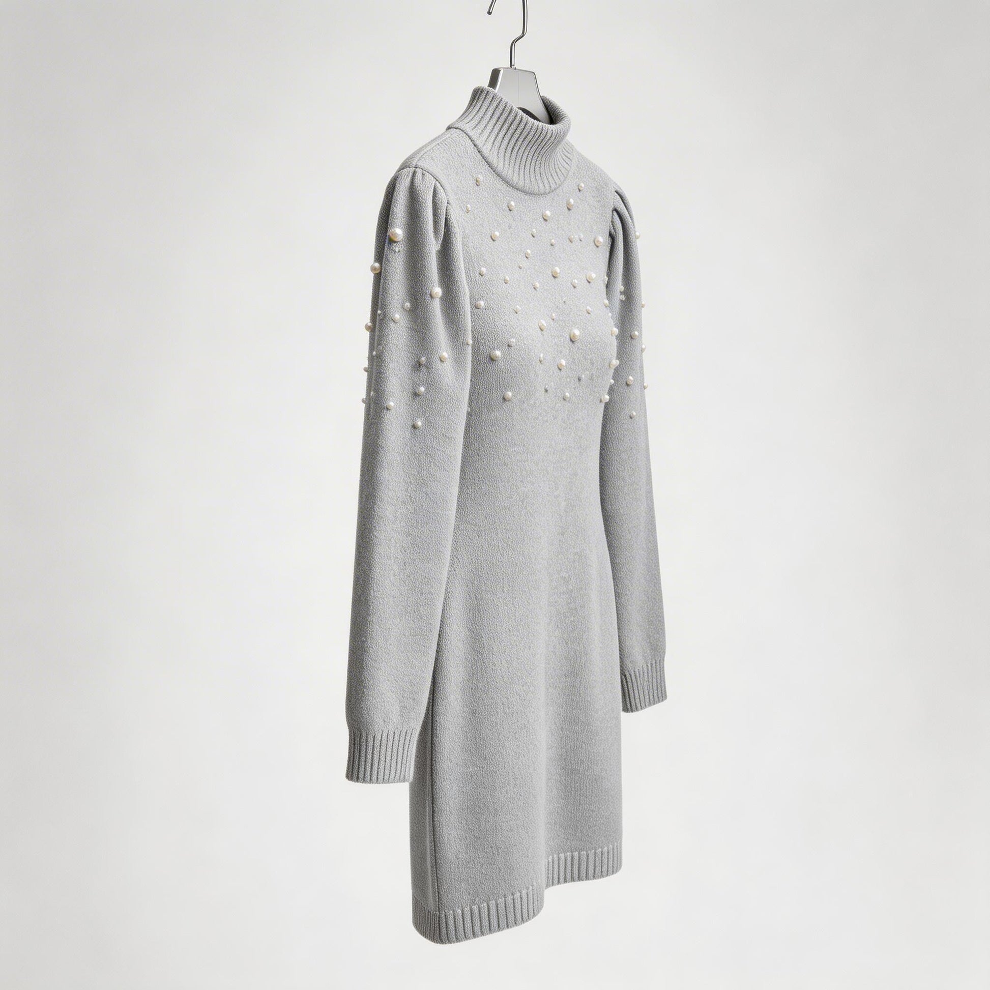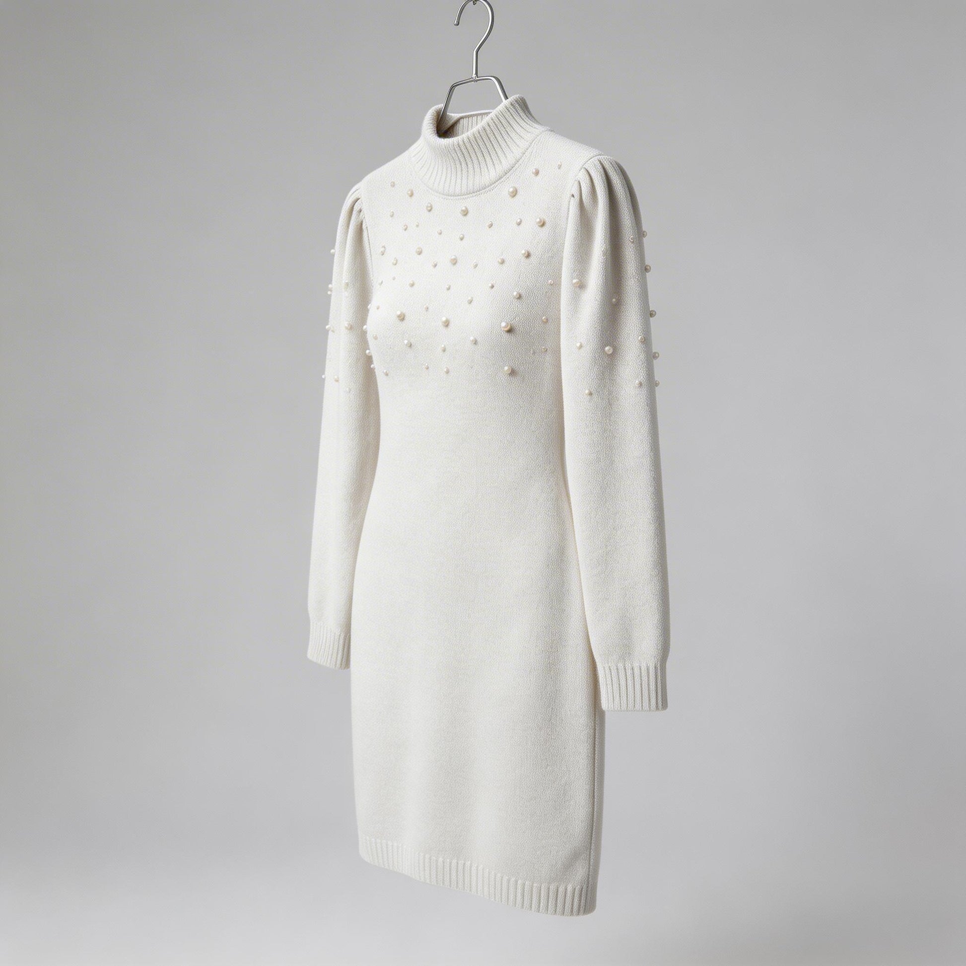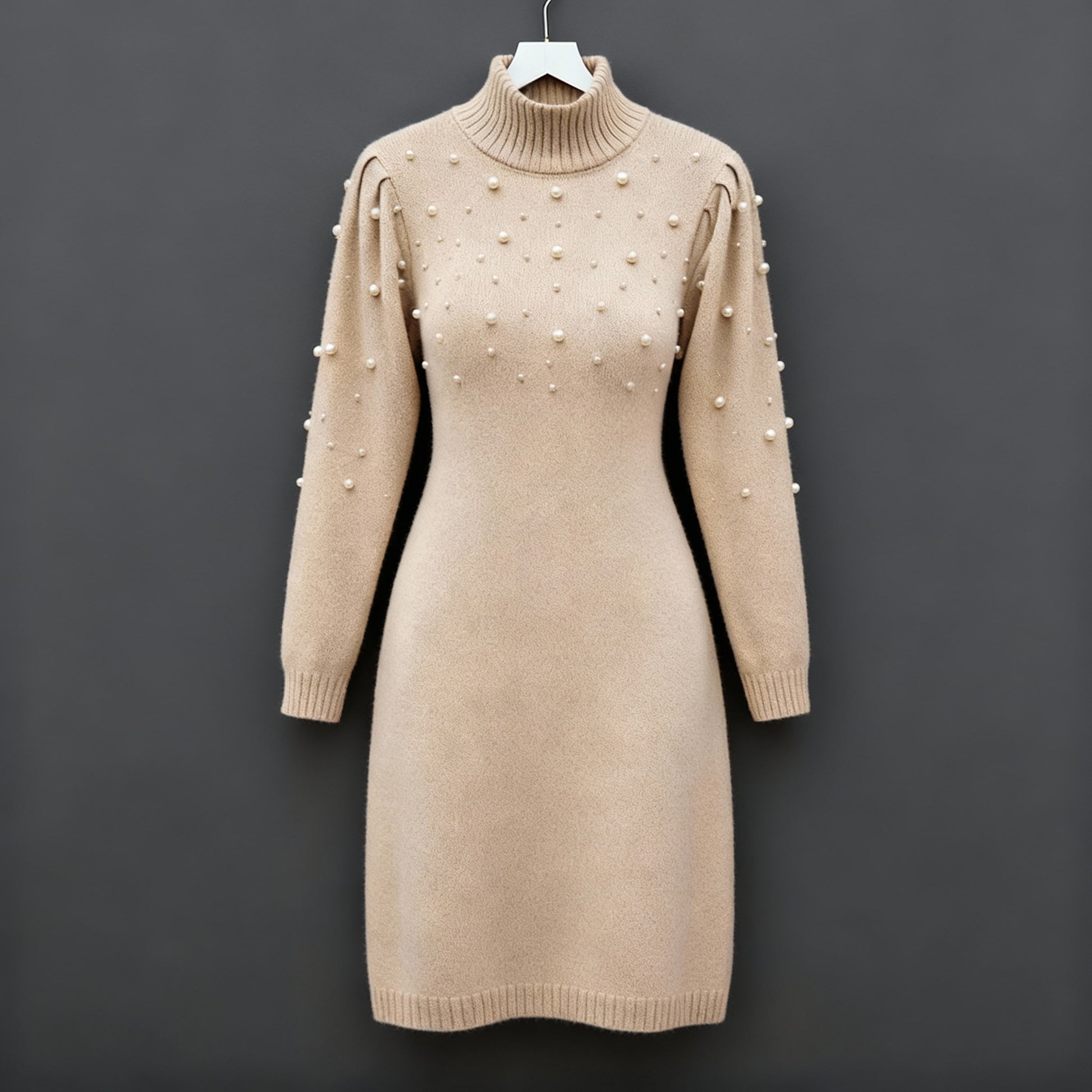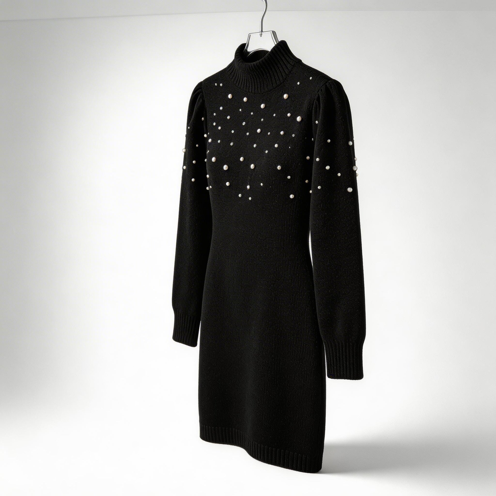Elegance meets comfort—adorned with pearls, this form-fitting knit dress delivers timeless Italian charm and modern warmth for effortless everyday sophistication.