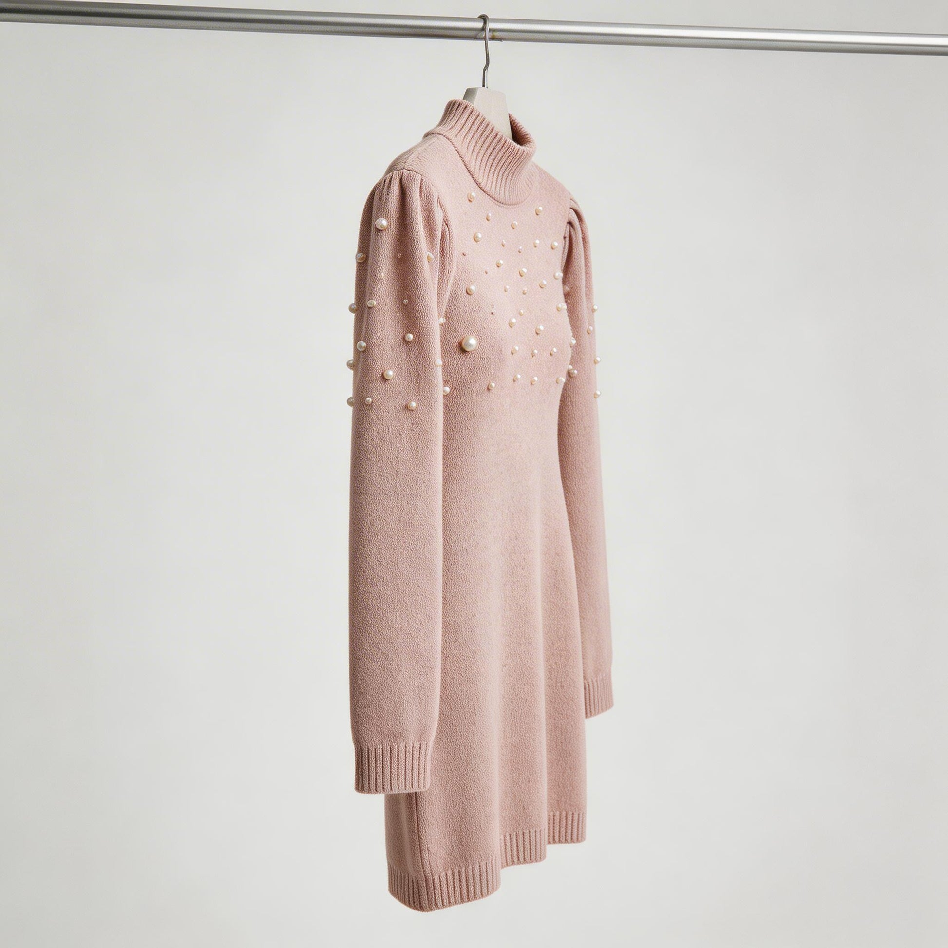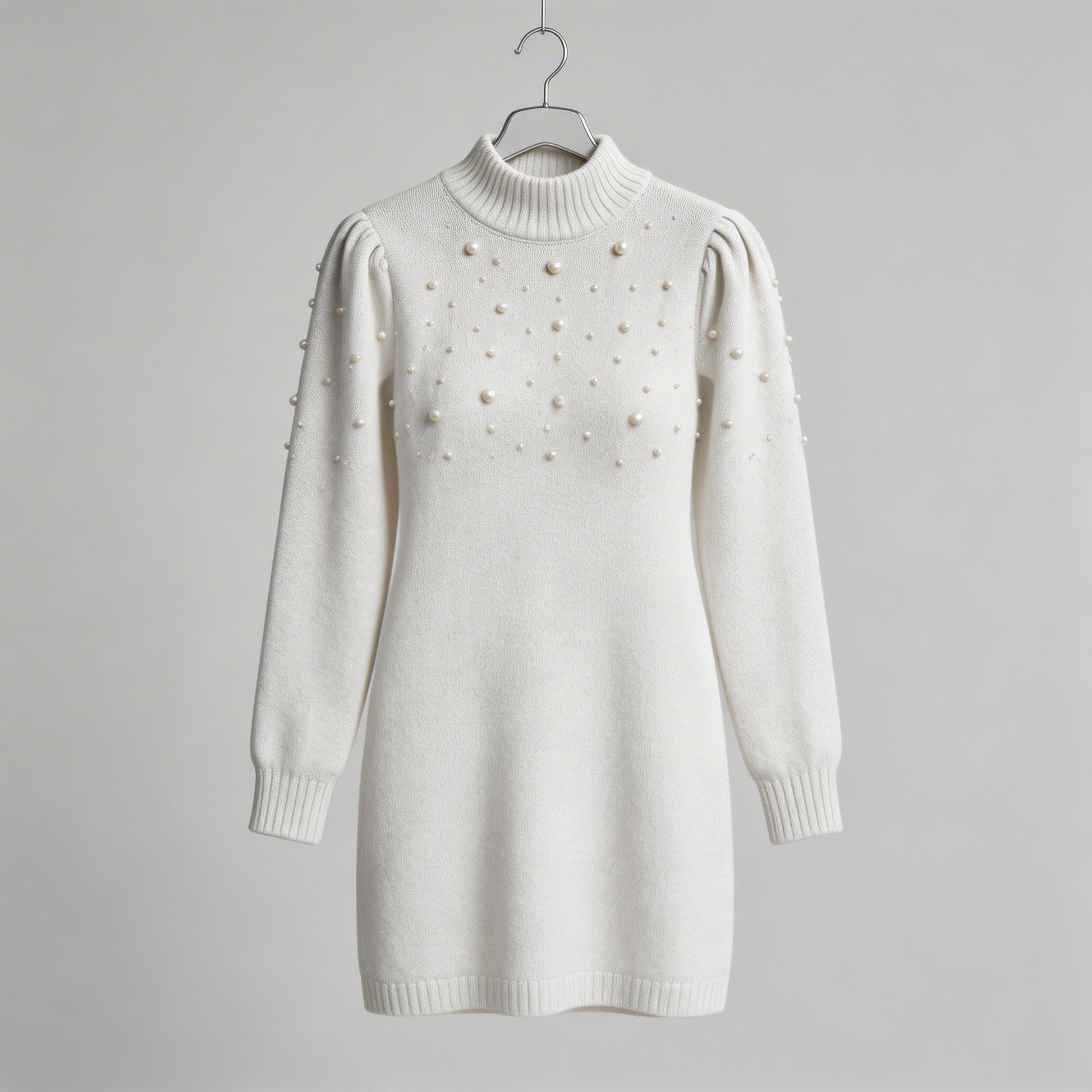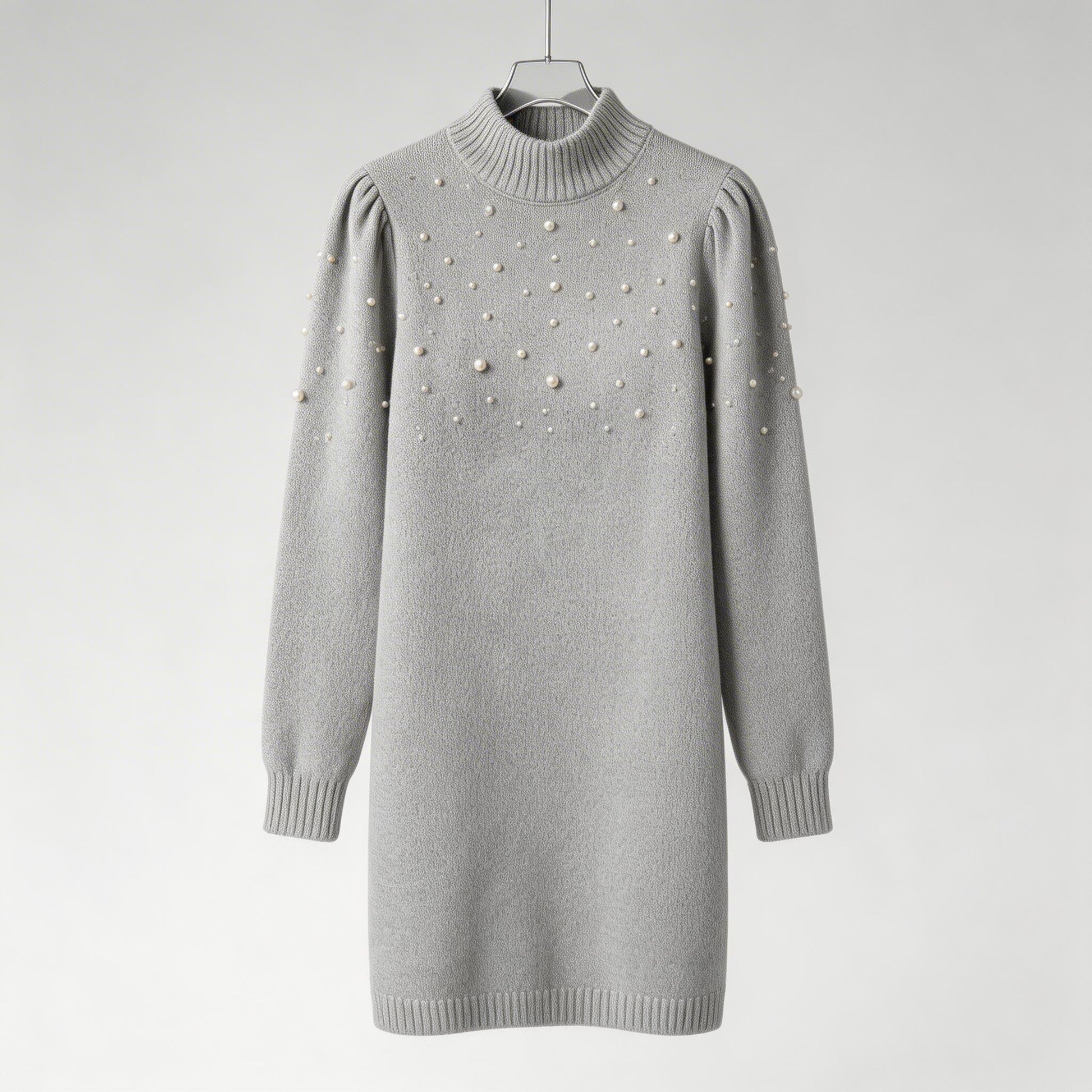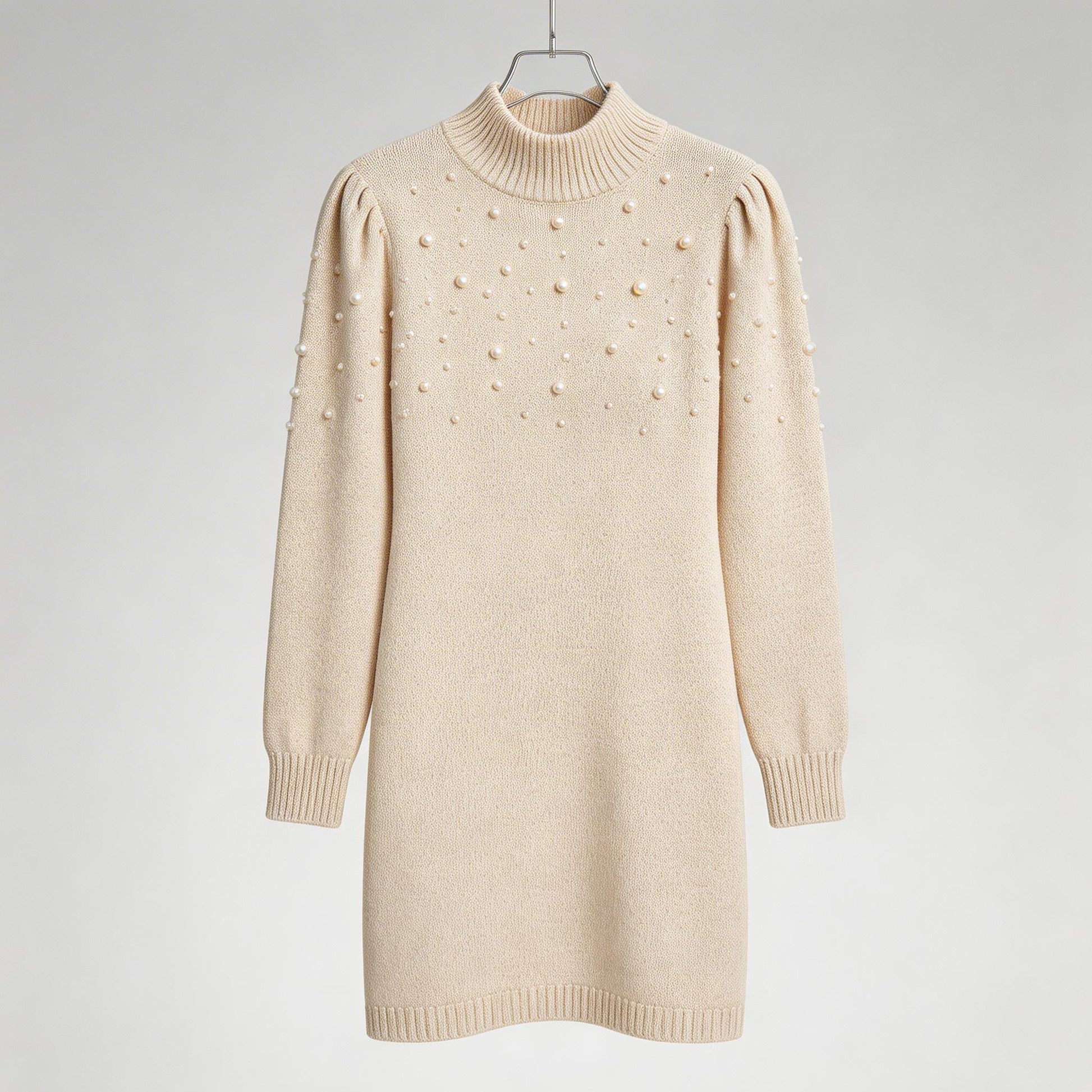Elegance meets comfort—adorned with pearls, this form-fitting knit dress delivers timeless Italian charm and modern warmth for effortless everyday sophistication.